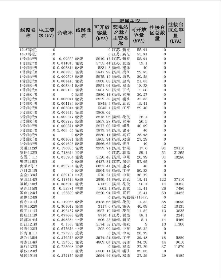 可开放容量有关信息