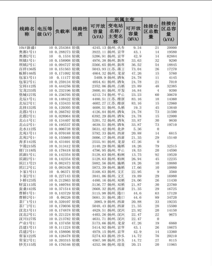 可开放容量有关信息
