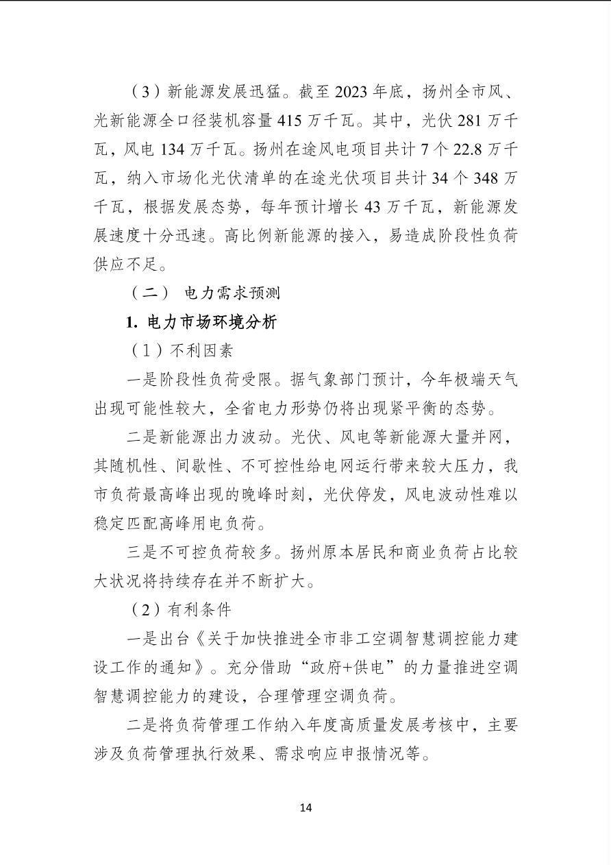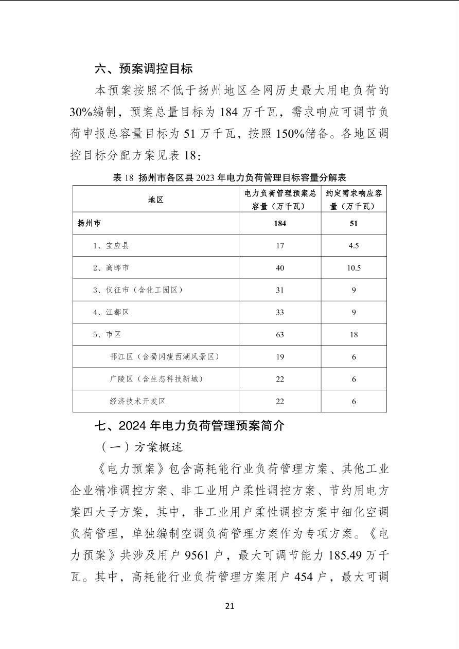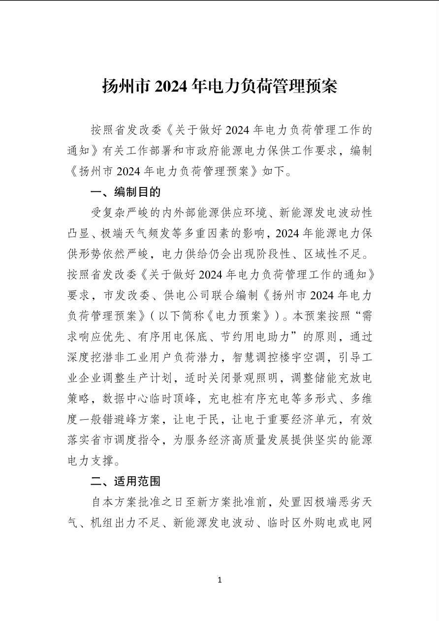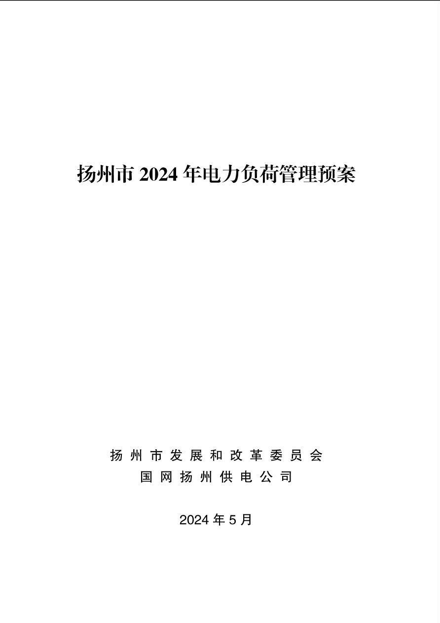 扬州市2024年电力负荷管理预案