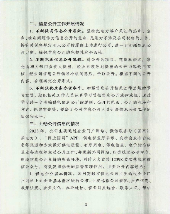 国网高邮市供电公司2023年度信息公开年报