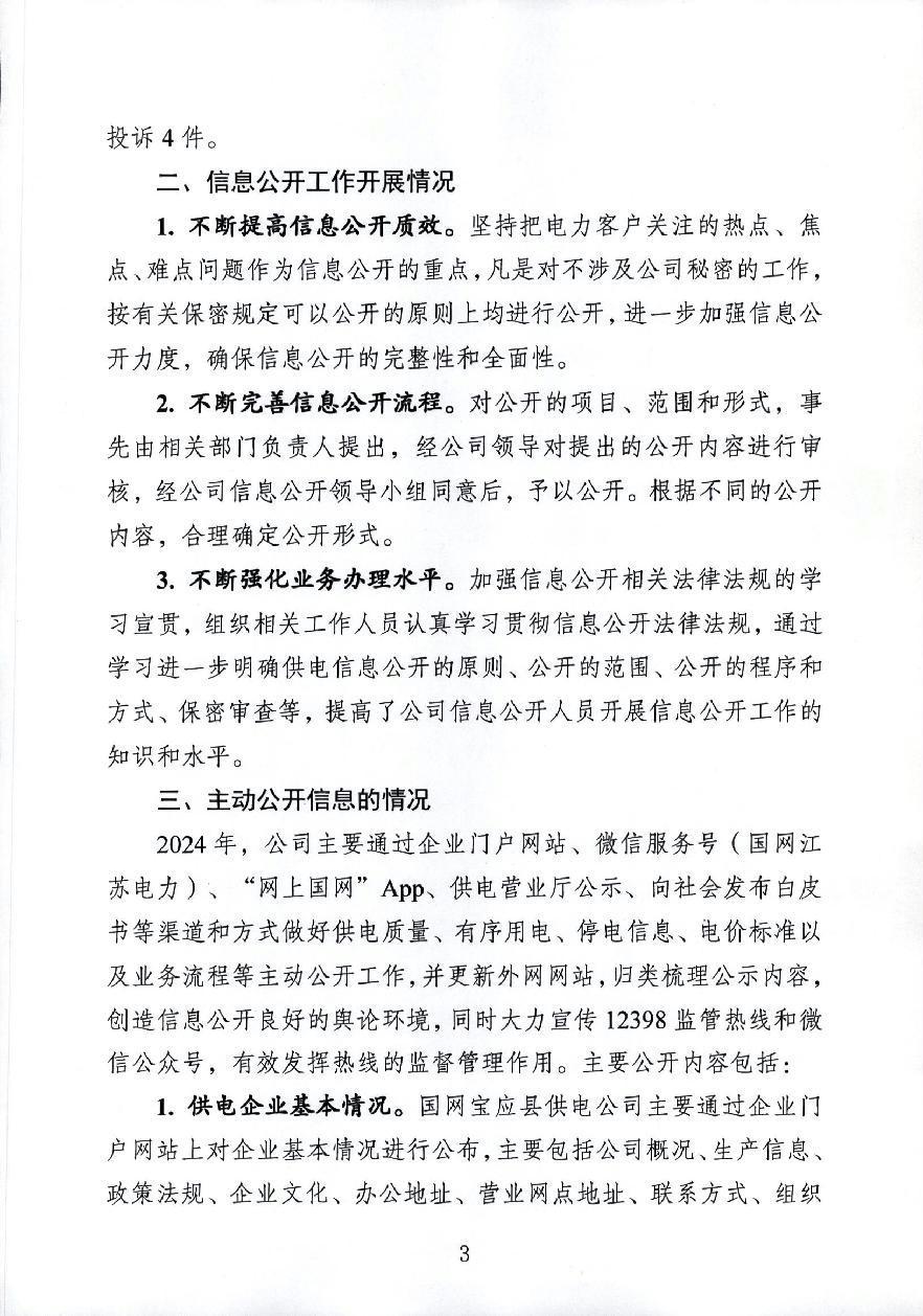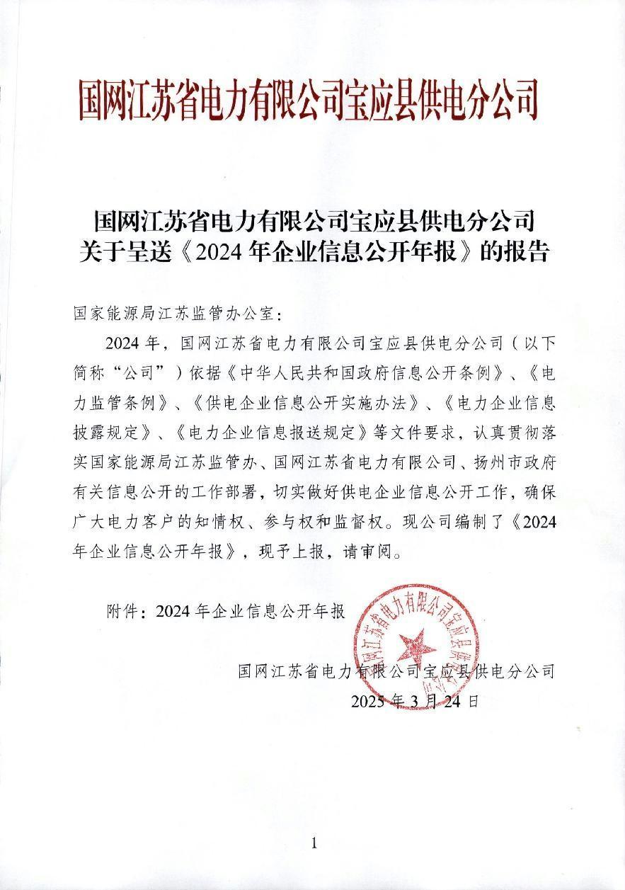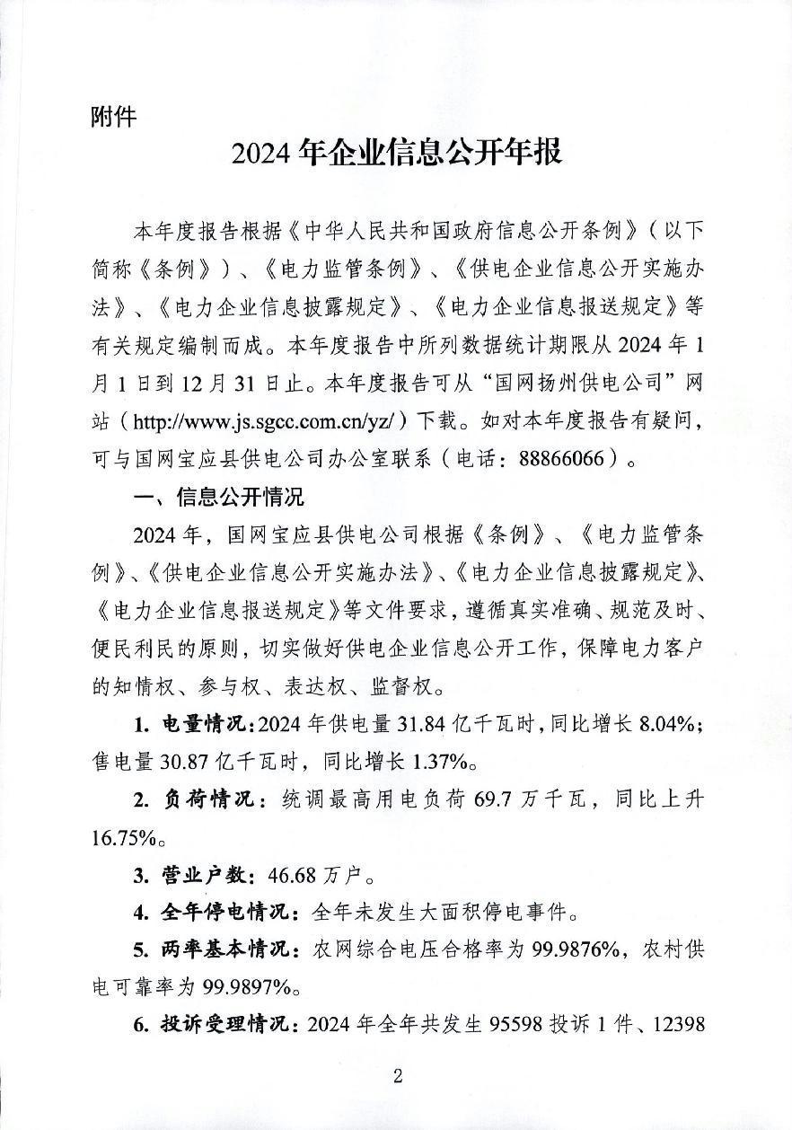 国网宝应县供电公司2024年度信息公开年报