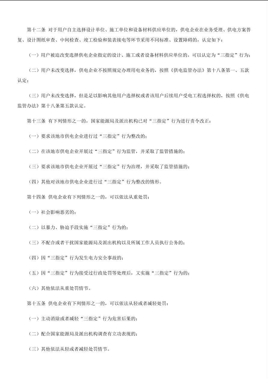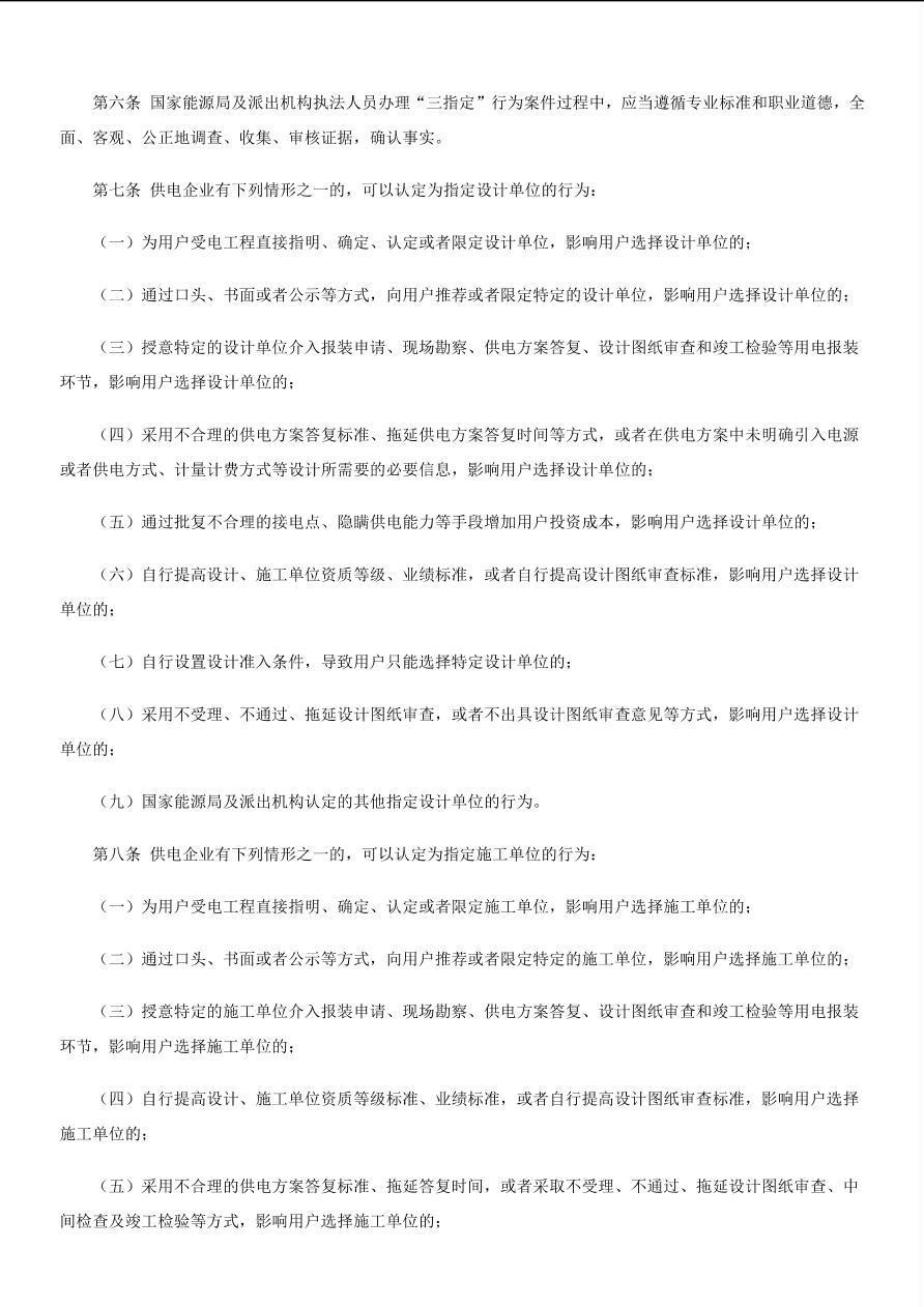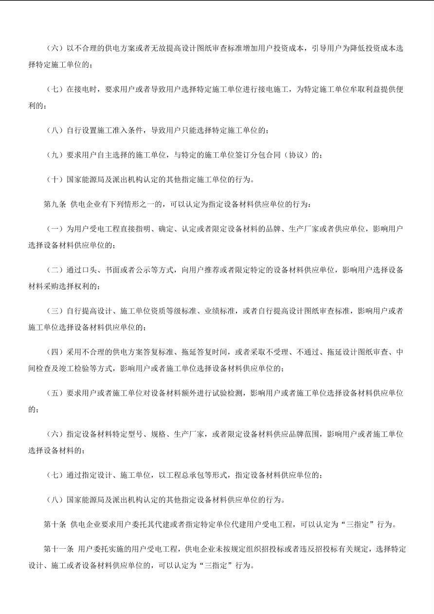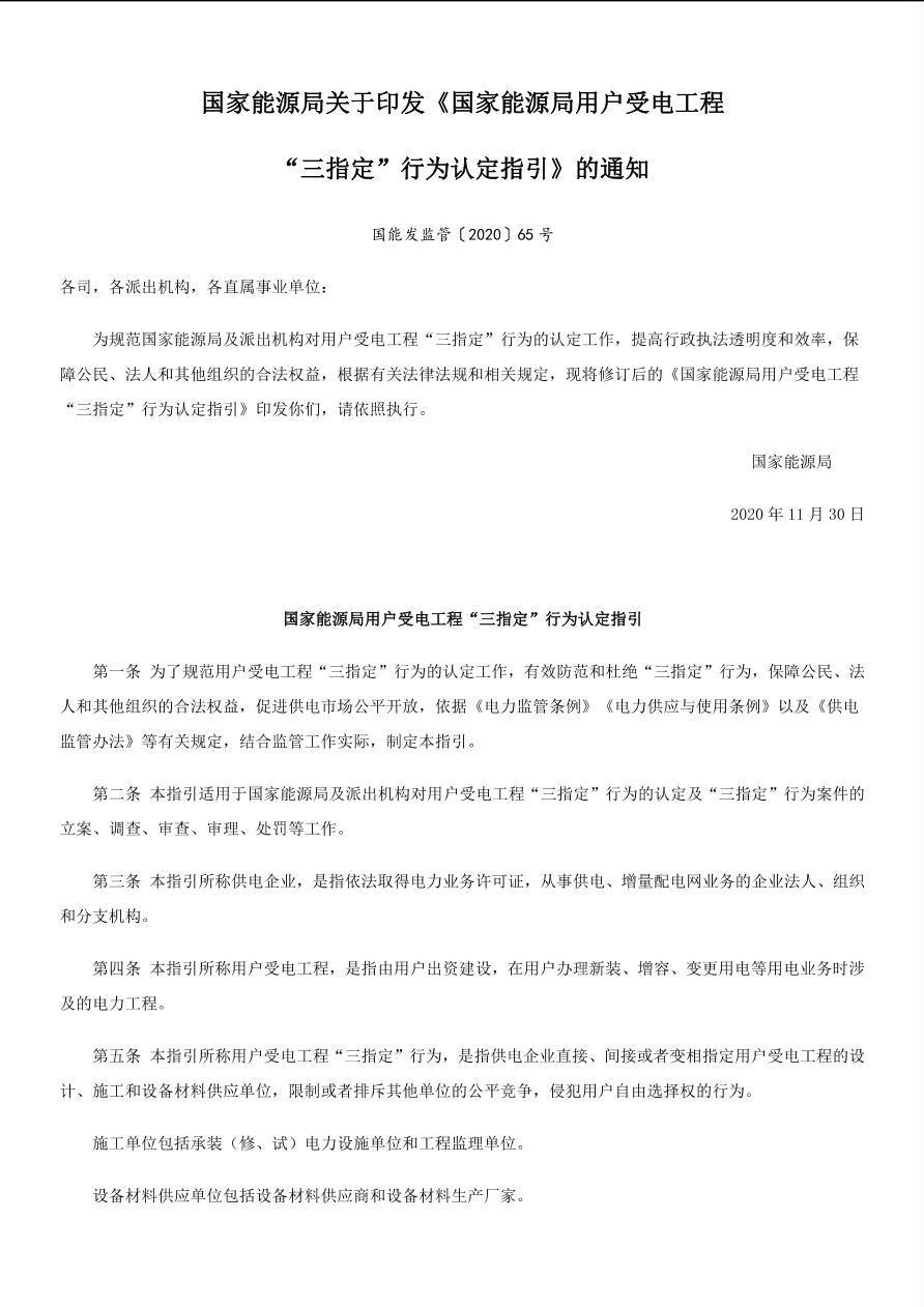国能发监管(2020)65号《国家能源局用户受电工程“三指定”行为认定指引》