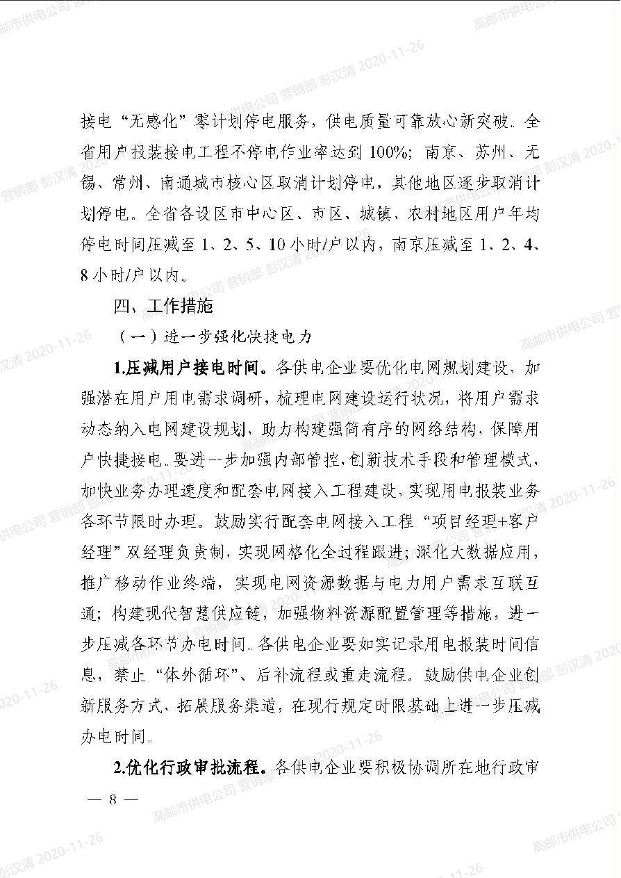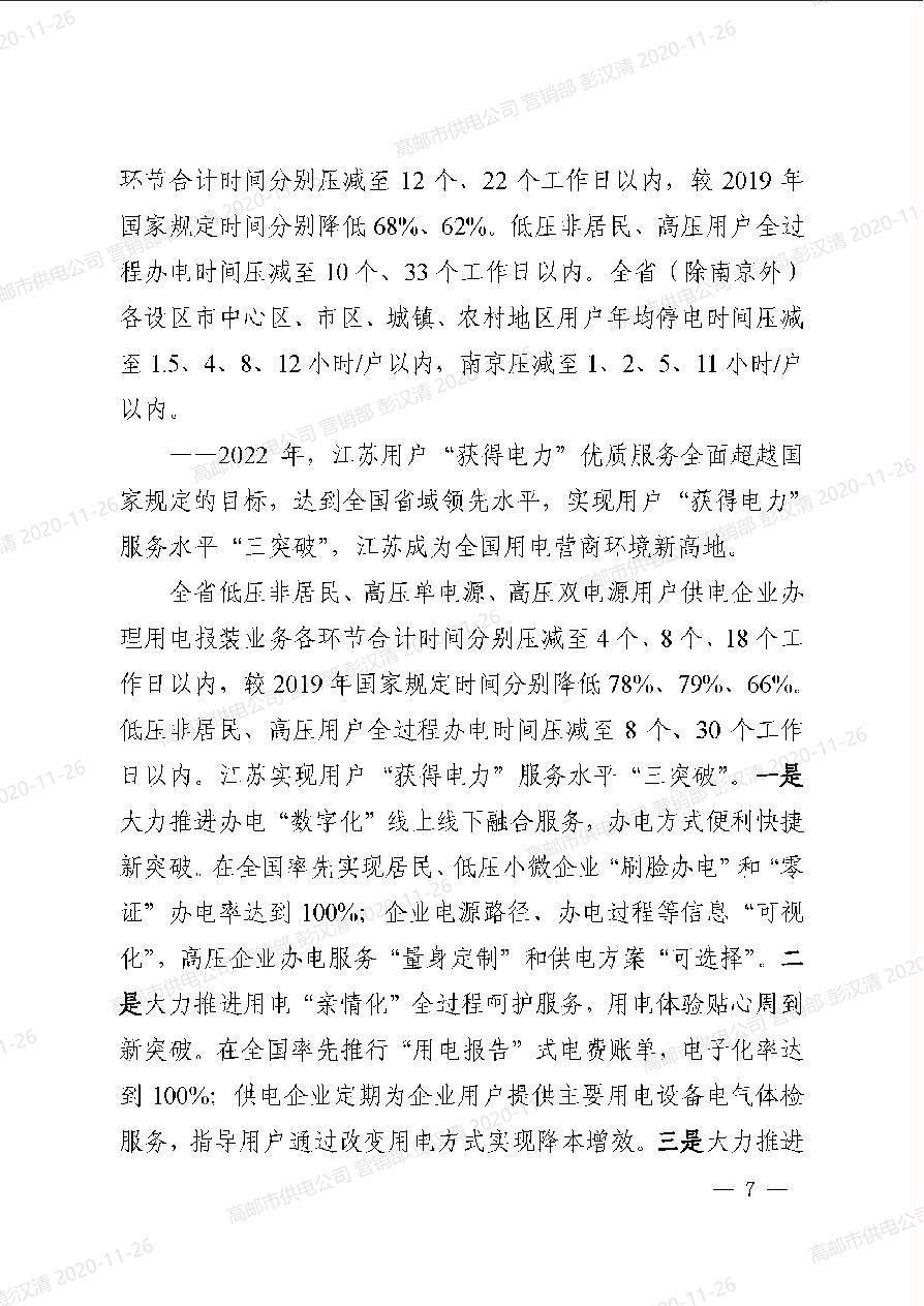 关于印发《江苏能源监管办全面提升“获得电力”服务水平持续优化用电营商环境三年(2020-2022年)行动方案》的通知(苏监能稽查[2020]115号)