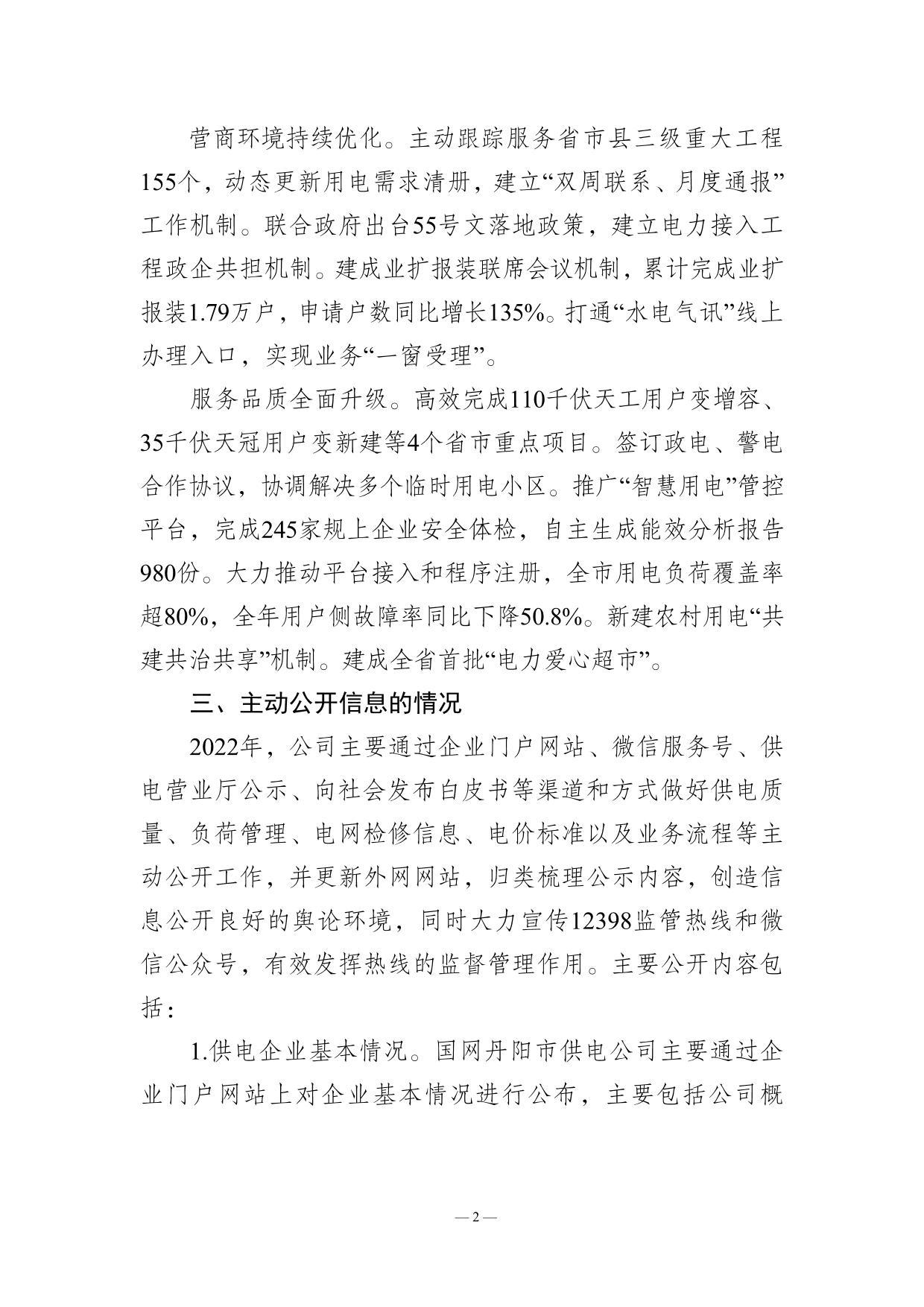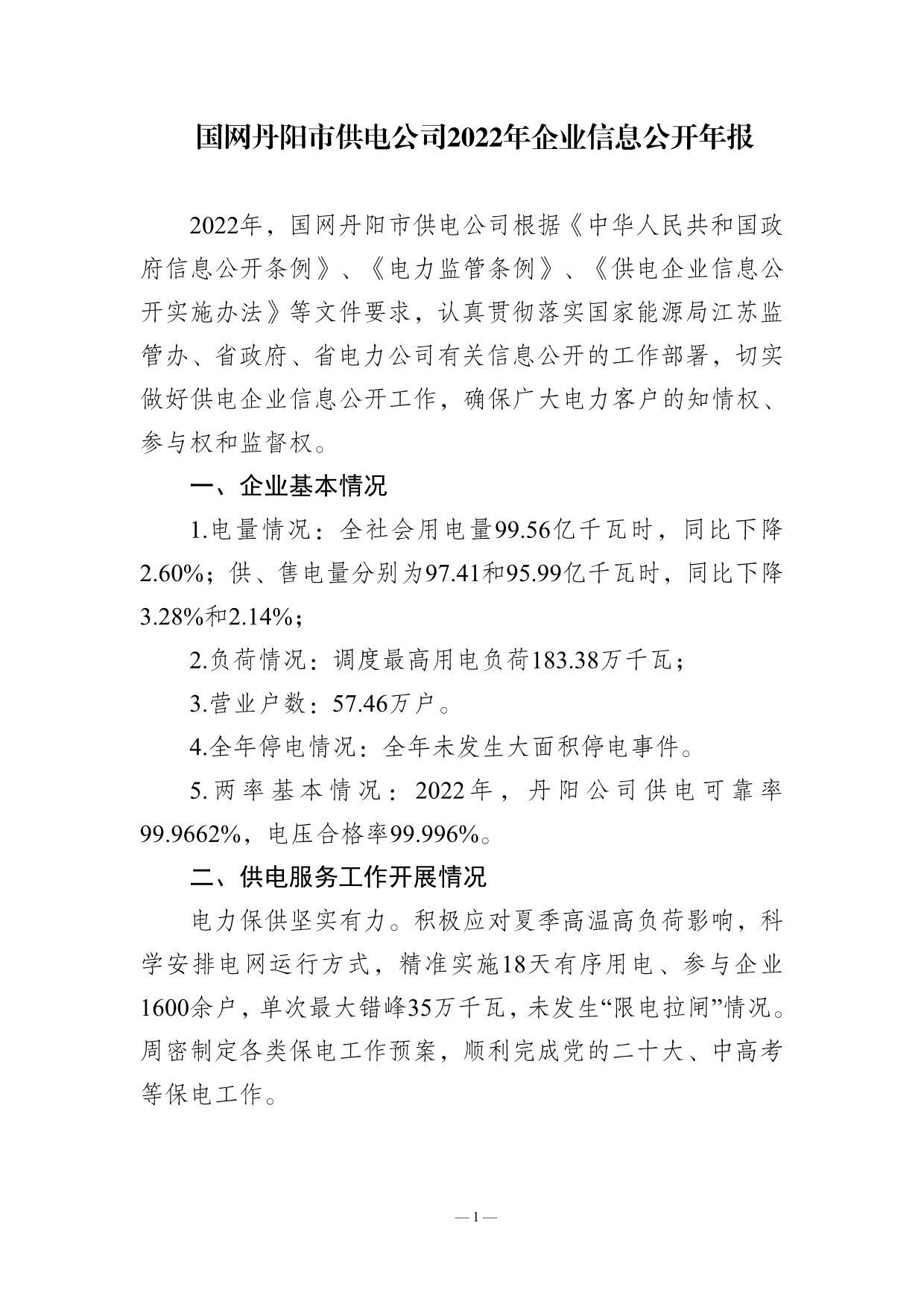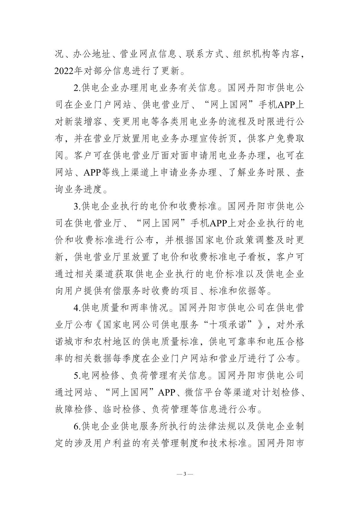 国网丹阳市供电公司2022年企业信息公开年报
