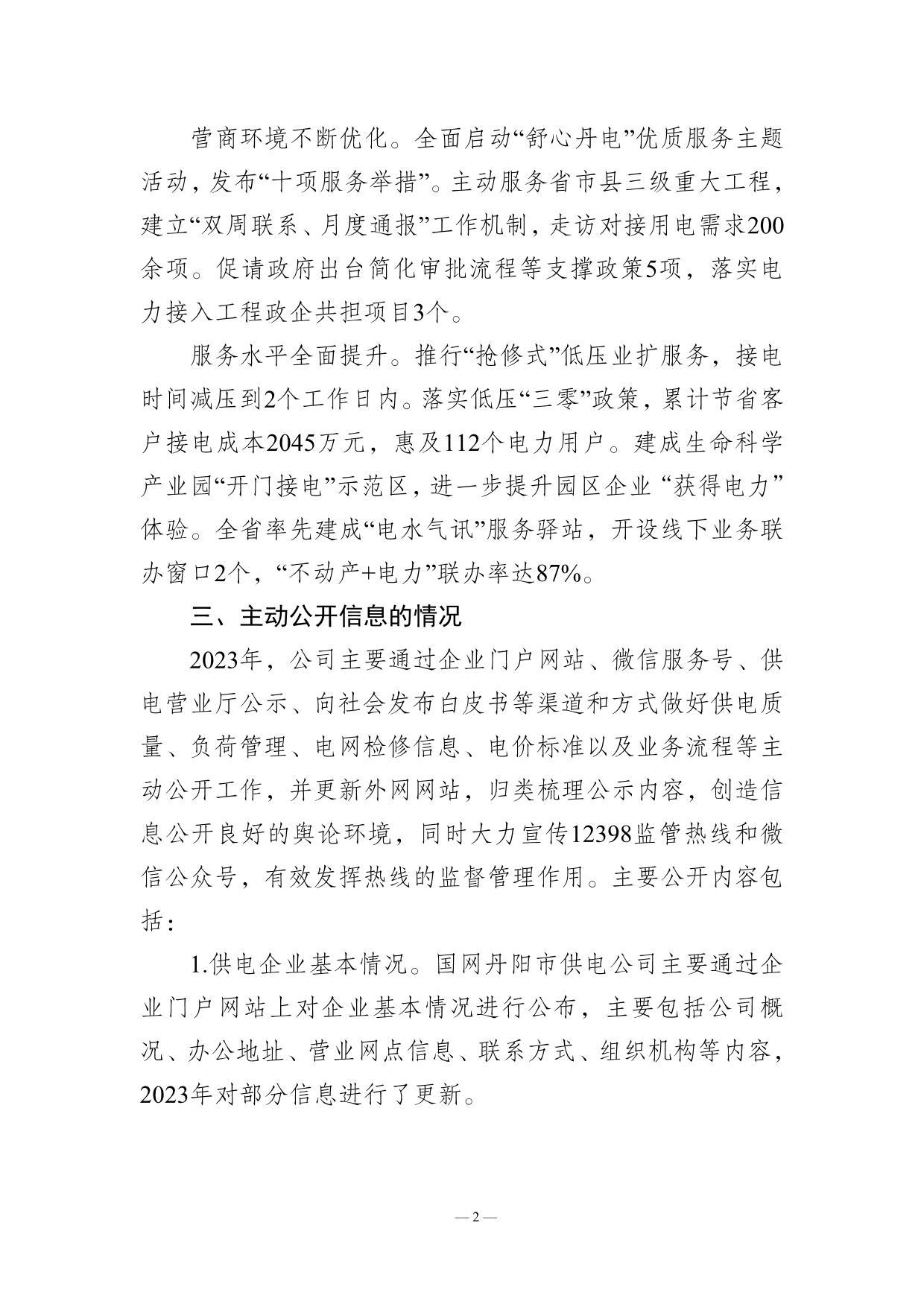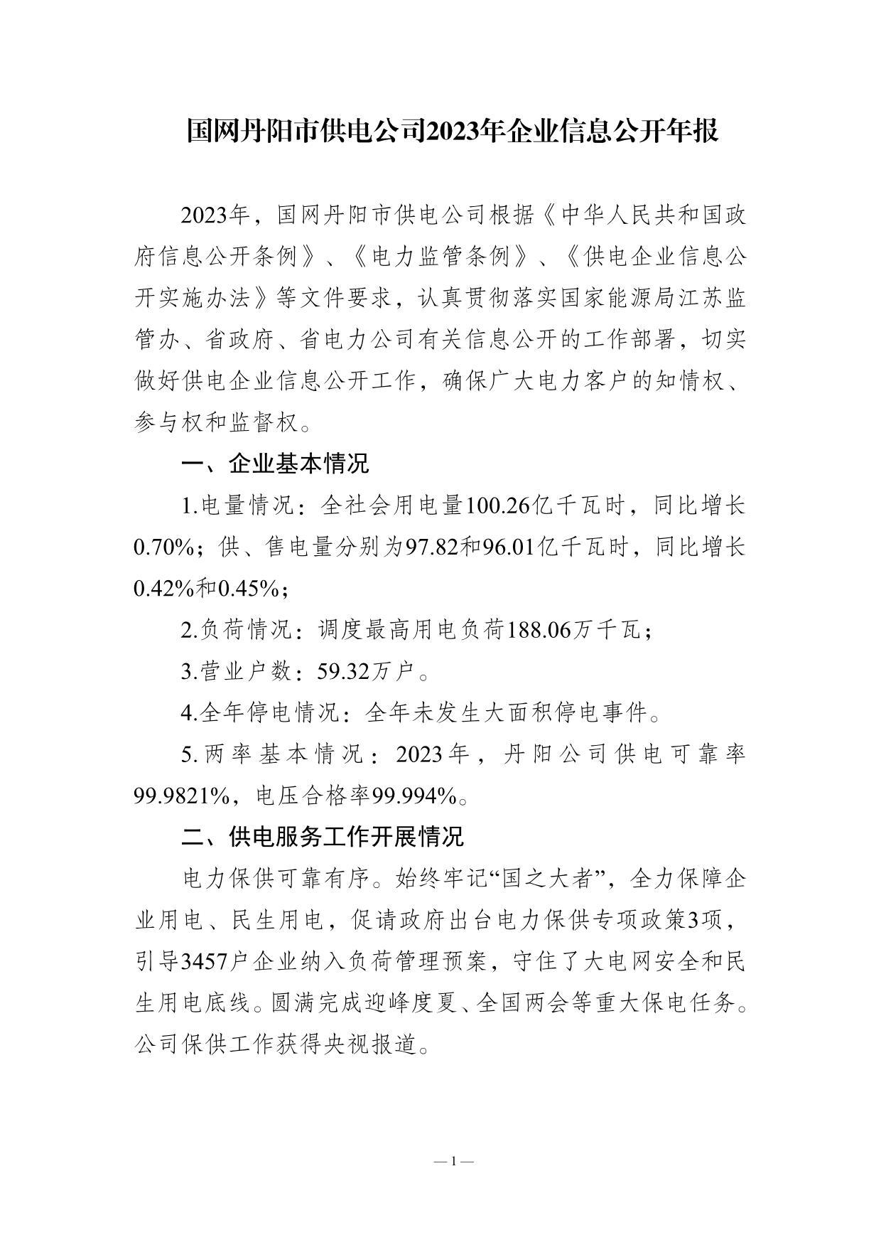 国网丹阳市供电公司2023年企业信息公开年报